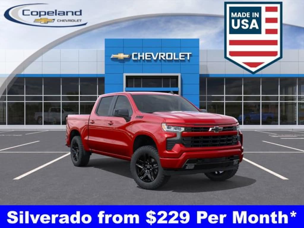 Chevy Drives America Sales Event- Available Low APR Financing, Affordable Lease Payments, and Huge Savings this August! Silverado 1500 RST, 4D Crew Cab, EcoTec3 5.3L V8, 10-Way Power Driver Seat w/Lumbar, 12.3 Multicolor Reconfigurable Digital Display, 120-Volt Bed Mounted Power Outlet, 120-Volt Interior Power Outlet, 3.23 Rear Axle Ratio, All-Star Edition, Apple CarPlay/Android Auto, Auto-Locking Rear Differential, Automatic Emergency Braking, Color-Keyed Carpeting Floor Covering, Convenience Package, Convenience Package II, Dark Appearance Package, Deep-Tinted Glass, Dual Exhaust w/Polished Outlets, Dual-Zone Automatic Climate Control, EZ Lift Power Lock & Release Tailgate, Following Distance Indicator, Forward Collision Alert, Front Frame-Mounted Black Recovery Hooks, Heated Driver & Front Outboard Passenger Seats, Heated Power-Adjustable Outside Mirrors, Heated Steering Wheel, Heavy-Duty Air Filter, High Capacity Suspension Package, Hill Descent Control, Hitch Guidance w/Hitch View, Integrated Trailer Brake Controller, Keyless Open & Start, Lane Keep Assist w/Lane Departure Warning, Leather Package, Leather-Appointed Front Seat Trim, Off-Road Suspension, Power Sliding Rear Window w/Rear Defogger, Preferred Equipment Group 1SP, Premium audio system: Chevrolet Infotainment 3 Premium, Protection Package, Radio: Chevrolet Infotainment 3 Premium System, Rear Rubberized-Vinyl Floor Mats, Remote Vehicle Starter System, Standard Suspension Package, Teen Driver, Theft Deterrent System (Unauthorized Entry), Tire Pressure Monitoring System, Trailering Package, Universal Home Remote, Up-Level Rear Seat w/Storage Package, Wheels: 20 x 9 High Gloss Black Painted Alum, Z71 Off-Road Package. Please read entire vehicle description for price detail or visit CopelandChevrolet.com.*Lease from payments are based on national Chevrolet lease examples on a specific trim level. See CopelandChevrolet.com for full lease disclosure. ^All prices exclude tax, title, license, and doc fee. Price includes: $1000 - Bonus Cash. Exp. 11/03/2025 $1250 - Trade Assistance. Exp. 11/03/2025 $3250 - Customer Cash. Exp. 11/03/2025 $500 - GM Card Sign Up & Spend Offer - New, pre-approved customers who apply for, get approved for, and spend a minimum of $1000 at the dealership at time of purchase/lease, can use this offer towards the purchase/lease of an eligible new Chevrolet. Exp. 10/31/2025 $1,500 - Exp. 10/31/2025 Price includes Count on Copeland Loyalty. Count on Copeland Loyalty - Current Copeland Chevy Customers who have previously purchased (leases excluded) a 2023 or newer Chevrolet new vehicle from Copeland Chevy will qualify for this loyalty offer and live in Brockton, Easton, Bridgewater, East Bridgewater, West Bridgewater, Mansfield, Norton, Randolph, Stoughton, or Avon. Cannot be combined with other offers and customers must finance with GM Financial.