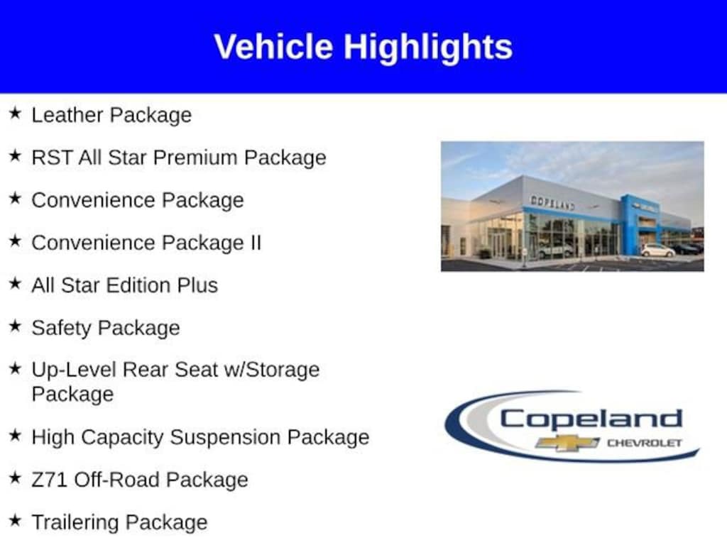 Chevy Drives America Sales Event- Available Low APR Financing, Affordable Lease Payments, and Huge Savings this August! Silverado 1500 RST, 4D Crew Cab, 3.0L I6, 10-Way Power Driver Seat w/Lumbar, 120-Volt Bed Mounted Power Outlet, 120-Volt Interior Power Outlet, 3.23 Rear Axle Ratio, Adaptive Cruise Control, All Star Edition Plus, Apple CarPlay/Android Auto, Automatic Emergency Braking, Convenience Package, Convenience Package II, Deep-Tinted Glass, Dual Exhaust w/Polished Outlets, Dual Rear USB Ports (Charge Only), Dual-Zone Automatic Climate Control, EZ Lift Power Lock & Release Tailgate, Following Distance Indicator, Forward Collision Alert, HD Surround Vision, Heated Driver & Front Outboard Passenger Seats, Heated Power-Adjustable Outside Mirrors, Heated Steering Wheel, Heavy-Duty Air Filter, High Capacity Suspension Package, Hill Descent Control, Hitch Guidance w/Hitch View, In-Vehicle Trailering System App, Keyless Open & Start, Lane Keep Assist w/Lane Departure Warning, Leather Package, Leather-Appointed Front Seat Trim, LED Cargo Area Lighting, Off-Road Suspension, Perimeter Lighting, Power Sliding Rear Window w/Rear Defogger, Power Sunroof, Premium Bose 7-Speaker Sound System, Radio: Chevrolet Infotainment 3 Premium System, Rear Cross Traffic Braking, Rear Pedestrian Alert, Remote Vehicle Starter System, RST All Star Premium Package, Safety Package, Standard Suspension Package, Theft Deterrent System (Unauthorized Entry), Trailer Camera Provisions, Trailer Side Blind Zone Alert, Trailering Package, Ultrasonic Front & Rear Park Assist, Universal Home Remote, Up-Level Rear Seat w/Storage Package, Wheels: 20 x 9 Painted Aluminum, Z71 Off-Road Package. Please read entire vehicle description for price detail or visit CopelandChevrolet.com.*Lease from payments are based on national Chevrolet lease examples on a specific trim level. See CopelandChevrolet.com for full lease disclosure. ^All prices exclude tax, title, license, and doc fee. Price includes: $1000 - Bonus Cash. Exp. 11/03/2025 $1000 - Trade Assistance. Exp. 11/03/2025 $2500 - Customer Cash. Exp. 11/03/2025 $500 - GM Card Sign Up & Spend Offer - New, pre-approved customers who apply for, get approved for, and spend a minimum of $1000 at the dealership at time of purchase/lease, can use this offer towards the purchase/lease of an eligible new Chevrolet. Exp. 10/31/2025 $1,500 - Exp. 10/31/2025 Price includes Count on Copeland Loyalty. Count on Copeland Loyalty - Current Copeland Chevy Customers who have previously purchased (leases excluded) a 2023 or newer Chevrolet new vehicle from Copeland Chevy will qualify for this loyalty offer and live in Brockton, Easton, Bridgewater, East Bridgewater, West Bridgewater, Mansfield, Norton, Randolph, Stoughton, or Avon. Cannot be combined with other offers and customers must finance with GM Financial.