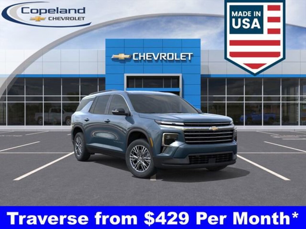 Count on Copeland Chevy for the best deal! - Available 0% APR on select new Chevrolet models*! Traverse LT, FWD, Apple CarPlay/Android Auto, Front dual zone A/C, Heated door mirrors, Heated front seats, Heated steering wheel, Navigation System, Radio: Audio System w/17.7 Diagonal Display. Please read entire vehicle description for price detail or visit CopelandChevrolet.com.*Lease from payments are based on national Chevrolet lease examples on a specific trim level. See CopelandChevrolet.com for full lease disclosure. ^All prices exclude tax, title, license, and doc fee. Price includes: $1500 - Customer Cash. Exp. 01/02/2026 $1,111 - Exp. 12/31/2025 Price includes Count on Copeland Loyalty. Count on Copeland Loyalty - Current Copeland Chevy Customers who have previously purchased (leases excluded) a 2023 or newer Chevrolet new vehicle from Copeland Chevy Brockton will qualify for this loyalty offer and live in Brockton, Easton, Bridgewater, East Bridgewater, West Bridgewater, Mansfield, Norton, Randolph, Stoughton, Raynham, or Avon. Cannot be combined with other offers and customers must finance with GM Financial. $500 - GM Card Sign Up & Spend Offer - New, pre-approved customers who apply for, get approved for, and spend a minimum of $1000 at the dealership at time of purchase/lease, can use this offer towards the purchase/lease of an eligible new Chevrolet. Exp. 12/31/2025
