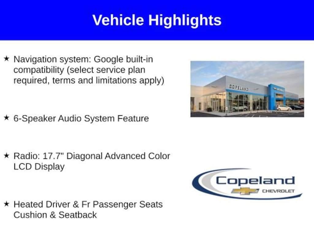Count on Copeland Chevy for the best deal! - Available 2.9% for 72 Months on select models*! Equinox EV LT, FWD, 6-Speaker Audio System Feature, Heated Driver & Fr Passenger Seats Cushion & Seatback, Navigation system: Google built-in compatibility (select service plan required, terms and limitations apply), Radio: 17.7 Diagonal Advanced Color LCD Display. Please read entire vehicle description for price detail or visit CopelandChevrolet.com.*Lease from payments are based on national Chevrolet lease examples on a specific trim level. See CopelandChevrolet.com for full lease disclosure. ^All prices exclude tax, title, license, and doc fee. Price includes: $2000 - Customer Cash. Exp. 11/03/2025 $1,500 - Exp. 10/31/2025 Price includes Count on Copeland Loyalty. Count on Copeland Loyalty - Current Copeland Chevy Customers who have previously purchased (leases excluded) a 2023 or newer Chevrolet new vehicle from Copeland Chevy will qualify for this loyalty offer and live in Brockton, Easton, Bridgewater, East Bridgewater, West Bridgewater, Mansfield, Norton, Randolph, Stoughton, or Avon. Cannot be combined with other offers and customers must finance with GM Financial. $500 - GM Card Sign Up & Spend Offer - New, pre-approved customers who apply for, get approved for, and spend a minimum of $1000 at the dealership at time of purchase/lease, can use this offer towards the purchase/lease of an eligible new Chevrolet. Exp. 10/31/2025