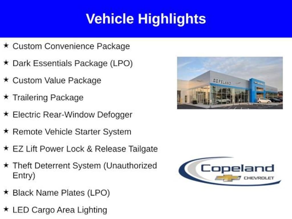 Count on Copeland Chevy for the best deal! - Available 2.9% for 72 Months on select models*! Silverado 1500 Custom, 4D Crew Cab, 4WD, Black Name Plates (LPO), Custom Convenience Package, Custom Value Package, Dark Essentials Package (LPO), Electric Rear-Window Defogger, EZ Lift Power Lock & Release Tailgate, Hitch Guidance, LED Cargo Area Lighting, Remote Vehicle Starter System, Theft Deterrent System (Unauthorized Entry), Trailering Package. Please read entire vehicle description for price detail or visit CopelandChevrolet.com.*Lease from payments are based on national Chevrolet lease examples on a specific trim level. See CopelandChevrolet.com for full lease disclosure. ^All prices exclude tax, title, license, and doc fee. Price includes: $1000 - Bonus Cash. Exp. 11/03/2025 $1250 - Trade Assistance. Exp. 11/03/2025 $1750 - Customer Cash. Exp. 11/03/2025 $2500 - Select Market Chevy Loyalty Cash. Exp. 11/03/2025 $2,000 - Exp. 10/31/2025 Price includes Count on Copeland Loyalty. Count on Copeland Loyalty - Current Copeland Chevy Customers who have previously purchased (leases excluded) a 2023 or newer Chevrolet new vehicle from Copeland Chevy will qualify for this loyalty offer and live in Brockton, Easton, Bridgewater, East Bridgewater, West Bridgewater, Mansfield, Norton, Randolph, Stoughton, or Avon. Cannot be combined with other offers and customers must finance with GM Financial. $500 - GM Card Sign Up & Spend Offer - New, pre-approved customers who apply for, get approved for, and spend a minimum of $1000 at the dealership at time of purchase/lease, can use this offer towards the purchase/lease of an eligible new Chevrolet. Exp. 10/31/2025