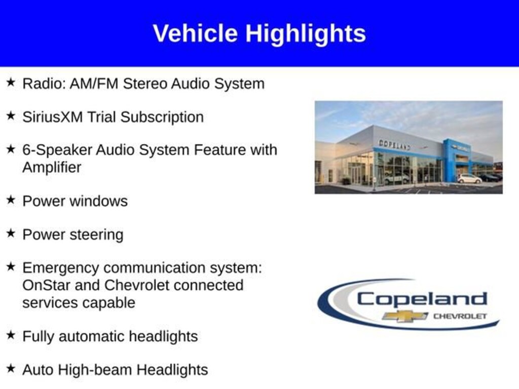 - Emergency Communication System: OnStar and Chevrolet Connected Services Capable