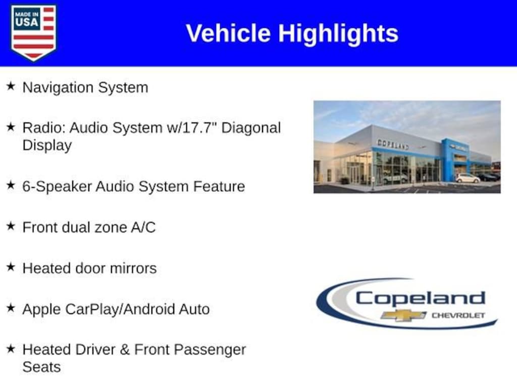 Count on Copeland Chevy for the best deal! - Available 2.9% for 72 Months on select models*! Traverse LT, AWD, 6-Speaker Audio System Feature, Apple CarPlay/Android Auto, Front dual zone A/C, Heated door mirrors, Heated Driver & Front Passenger Seats, Navigation System, Radio: Audio System w/17.7 Diagonal Display. Please read entire vehicle description for price detail or visit CopelandChevrolet.com.*Lease from payments are based on national Chevrolet lease examples on a specific trim level. See CopelandChevrolet.com for full lease disclosure. $500 - GM Card Sign Up & Spend Offer - New, pre-approved customers who apply for, get approved for, and spend a minimum of $1000 at the dealership at time of purchase/lease, can use this offer towards the purchase/lease of an eligible new Chevrolet. Exp. 11/30/2025 $2,000 - Exp. 11/30/2025 Price includes Count on Copeland Loyalty. Count on Copeland Loyalty - Current Copeland Chevy Customers who have previously purchased (leases excluded) a 2023 or newer Chevrolet new vehicle from Copeland Chevy will qualify for this loyalty offer and live in Brockton, Easton, Bridgewater, East Bridgewater, West Bridgewater, Mansfield, Norton, Randolph, Stoughton, or Avon. Cannot be combined with other offers and customers must finance with GM Financial.